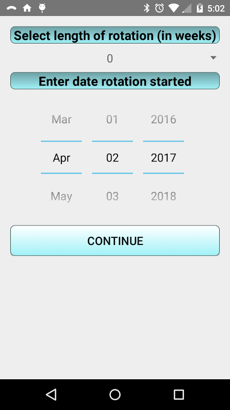 Pengguna memungut panjang putaran dan aplikasi membolehkan pengguna setakat ini untuk menentukan hari cuti mengambil