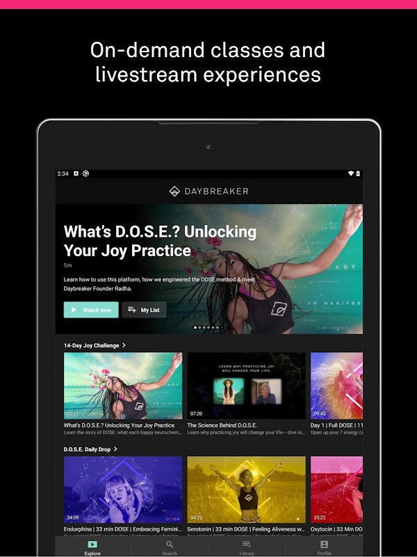 Belajarlah untuk membahagiakan kebahagiaan anda dan mulakan kegembiraan dengan berani dengan komuniti global. D.O.S.E. by Daybreaker adalah platform kelab dan komuniti dalam talian dengan kelas atas permintaan dan pengalaman aliran langsung untuk menyokong neurokimia otak anda, sehingga anda dapat mengoptimumkan kebahagiaan anda.