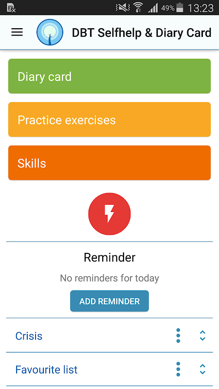 Aplikasi DBT Selfhelp & Diary Kad mengajar anda kemahiran yang membantu anda menguruskan emosi melanda, memecahkan tingkah laku yang merosakkan, membangun hubungan yang sihat, lebih fokus dalam masa kini dan meningkatkan kualiti hidup anda.
