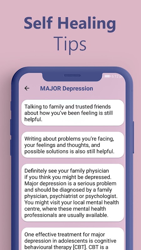 Berurusan dengan aplikasi Depresi adalah aplikasi yang membantu anda mendiagnosis tahap kemurungan yang anda miliki, dan berdasarkan bahawa ia memberi anda penyelesaian yang sesuai untuk tahap kemurungan anda, dalam beberapa kes kemurungan hanya hasil daripada kebimbangan dan beberapa masalah yang dilalui, tetapi jika orang itu tidak dapat keluar daripada keadaan itu maka keadaannya mungkin akan maju, kami akan memberi anda beberapa cara untuk mengelakkan kemajuan keadaan anda, jika kemurungan itu teruk kami akan membimbing anda untuk melakukan apa yang secepat mungkin