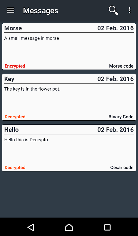 Decrypto adalah aplikasi yang menyediakan pelbagai alat penyulitan dan penyahsulitan. Lebih daripada 25 ciphers tradisional dilaksanakan seperti kod Caesar, kod ASCII atau kod Vigenère. Penjelasan dan sejarah ringkas disediakan dengan setiap jenis enkripsi untuk lebih memahaminya.