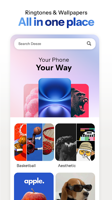 Tingkatkan pengalaman telefon Android anda dengan Deeze hari ini. Bersedia untuk menemui dunia nada dering baharu, nada dering percuma dan kertas dinding terbaik. Muat turun sekarang dan jadikan peranti Android anda sebagai milik anda!