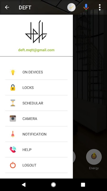- Tetapan Mood: DEFT menawarkan jumlah mood tanpa had untuk setiap kesempatan dan setiap suasana. Sekarang anda boleh menjadualkan / mengatur suasana sesuai dengan keperluan anda. Buat kombinasi lampu yang berbeza untuk ulang tahun perkahwinan anda, untuk ulang tahun keluarga dan banyak lagi. Anda juga boleh menambah sistem muzik dan TV.