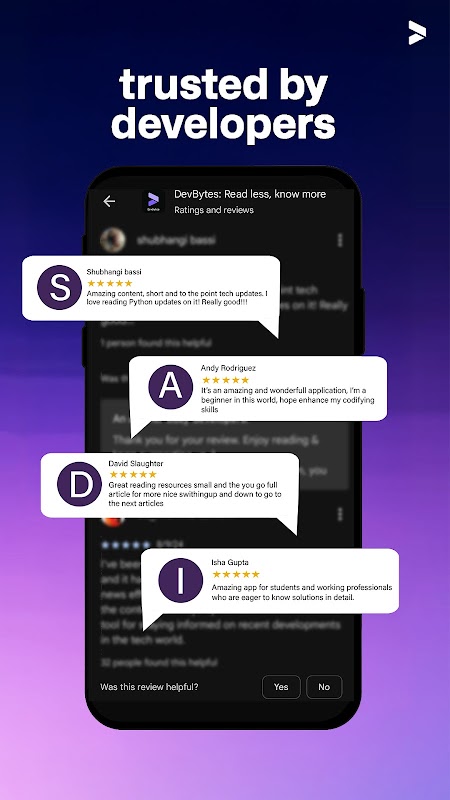 Daripada menyulap 10 apl berbeza hanya untuk kekal dikemas kini, DevBytes membawa semua yang anda perlukan dalam satu ruang yang bersih, pantas dan bebas gangguan. Tiada kekusutan. Tiada iklan. Hanya perkara penting yang menjadikan anda pembangun yang lebih tajam dan bijak. DevBytes boleh memastikan anda sentiasa tersambung tanpa masalah, hanya dalam 5-7 minit sehari.