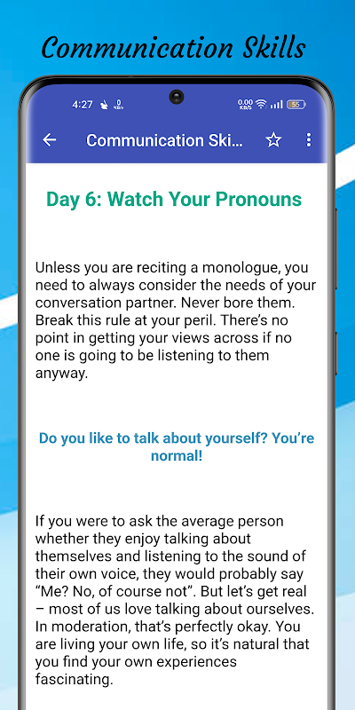 Aplikasi Kemahiran Komunikasi membantu untuk meneroka dan mempelajari kemahiran komunikasi dan aplikasi kemahiran komunikasi ini membina kekuatan mental yang kuat untuk membangunkan kemahiran komunikasi. Apl luar talian buku kemahiran komunikasi ini menetapkan matlamat 21 hari untuk mempelajari kemahiran komunikasi dalam bahasa Inggeris supaya anda boleh mempersembahkan diri anda kepada orang lain dengan mudah.