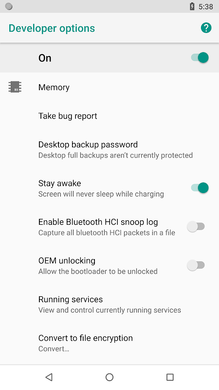 - OEM unlocking (Allow the bootloader to be unlocked)