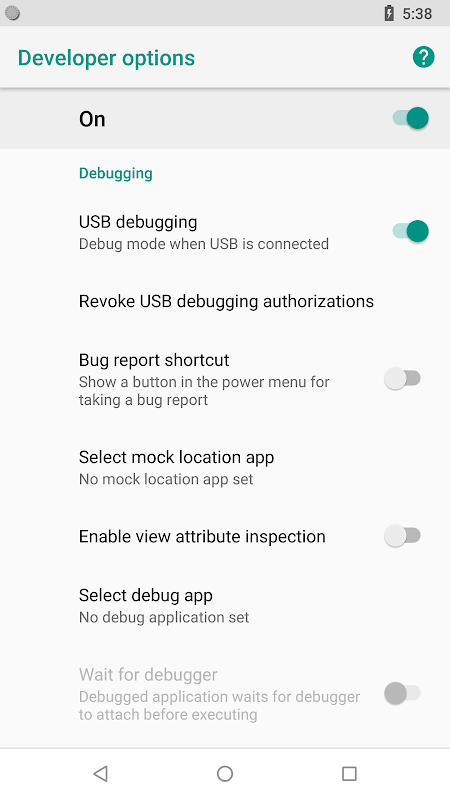 - USB Debugging option.