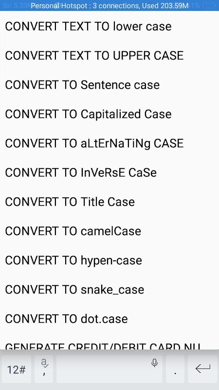 1) Untuk Menukarkan Karakter ke Kes Kalimat, Huruf Besar, KES aLtErNaTiNg, Casing InVeRsE, Sarung Judul, Kes unta, casing tanda hubung, kotak ular, dot.case