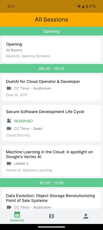 Aplikasi persidangan DevFest Cloud Bandung rasmi untuk menavigasi persidangan. Dengan aplikasi, anda boleh: