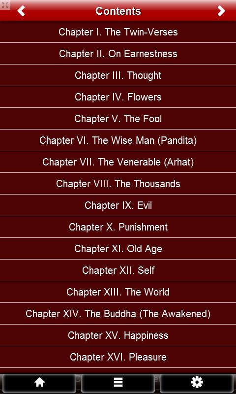Dhammapada PERCUMA terdiri daripada ajaran Sang Bhagava yang dicapai untuk menyelesaikan pencerahan di bawah Bodhi Tree. Dhammapada adalah kitab Buddha versified tradisinya disifatkan kepada Buddha sendiri. Ia adalah salah satu daripada teks yang paling terkenal dari Theravada canon. Menurut tradisi, ayat Dhammapada yang diucapkan oleh Buddha beberapa kali.