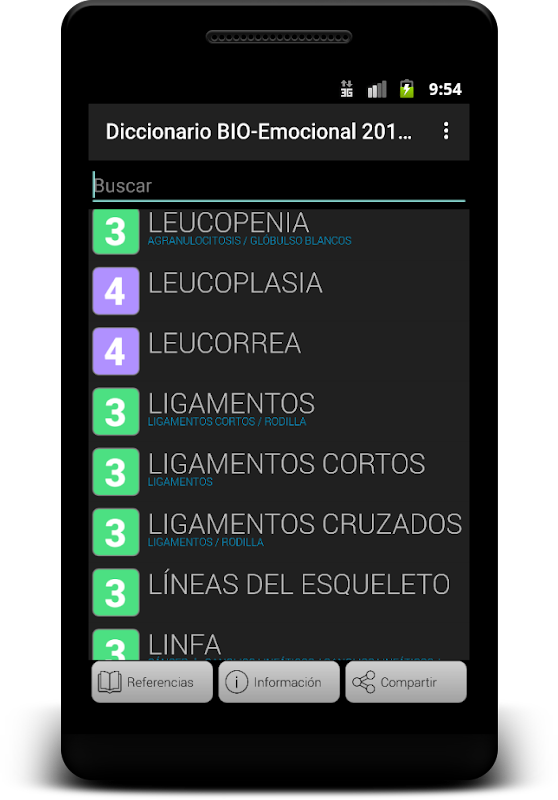Ini kamus baru berdasarkan versi buku ini dengan nama yang sama di sini disediakan untuk membawa pada peranti android anda. Berikut adalah kira-kira 1300 penyakit, penyakit, gejala, bahagian, organ-organ, sistem atau protokol untuk membimbing anda dalam mencari asal-emosi / konflik undang penyakit. Dan rujukan dan penulis beliau. Idea kajian Dr. Ryke Hamer G., Christian Flèche, Claude Sabbah, Enric Corbera, Enrique Bouron, Eric Rolf, Jacques Martel, Lise Bourbeau, Louise L. Hay, Ruediger Dhalke, Anne-Ancelin Schutzenberger, Alejandro Jodorowsky Angela Hoffman, André Malachane, Bernard Vidal, Christian Beyer, Corine Dewolf, Cécile Meis, Dataille Daniel, Daniel Miron, Didier Escassut, Edouard van den Bogaert, Athias Gerard Jean-Pierre Piret, Josie Kramer, Marc Fréchet Michelle caffin, Michel Paulus, Montserrat Batllo, Olivier Soulier, Quirico Blonda, Rafael Maranon, Roberto Fradera, Robert Guinée, Georges Lahy, Yves Gautier dan beberapa lagi. Kajian dan arus ditunjukkan sebagai yang dinyatakan dalam Perubatan New Jerman, Mentafsirkan biologi yang Biodescodificación atau Bioneuroemoción. Semua arus ini, saintifik dan menerima berdasarkan prinsip bahawa sifat tidak sesat, tidak silap, mereka tidak wujud dalam kesilapan beliau tetapi mengikuti proses berdasarkan program yang ditempatkan di dalam sedar kita dan membolehkan kita untuk terus hidup, melindungi, berkaitan , bergerak, dan lain-lain Begitu juga, konflik timbul apabila kita memasuki konsisten, iaitu, kita berfikir, merasa dan bertindak dengan cara berbeza daripada satu sama lain dan tidak dalam arah yang sama. Mencari hak penyakit, penyakit, gejala, organ atau sebahagian daripada kamus, kita boleh mendapatkan petunjuk tentang konflik yang kita tinggal tetapi yang kita tidak sedar.