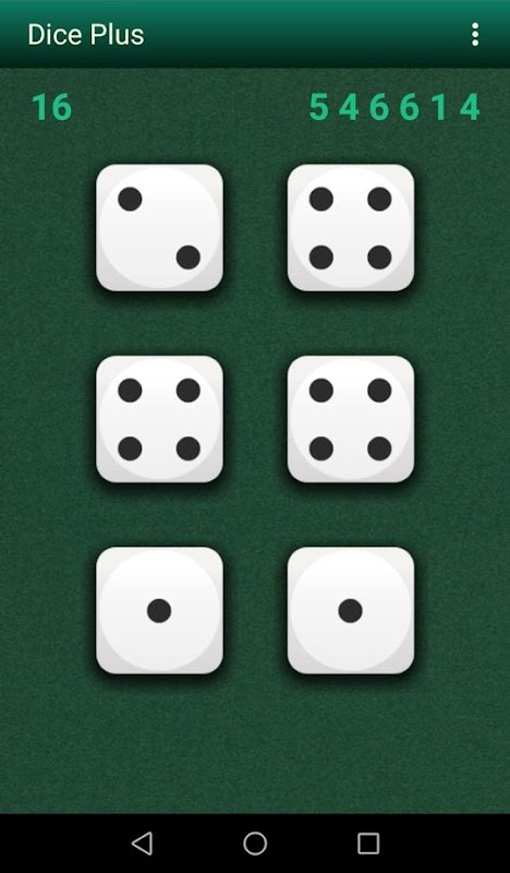 Dice Plus mungkin berguna dalam permainan sebenar seperti Backgammon dan semua variannya, atau untuk bermain permainan Yahtzee mudah atau yang serupa. Kami hanya menjamin kerawak urutan nombor ini, jadi anda boleh bergantung padanya dalam sebarang konteks.