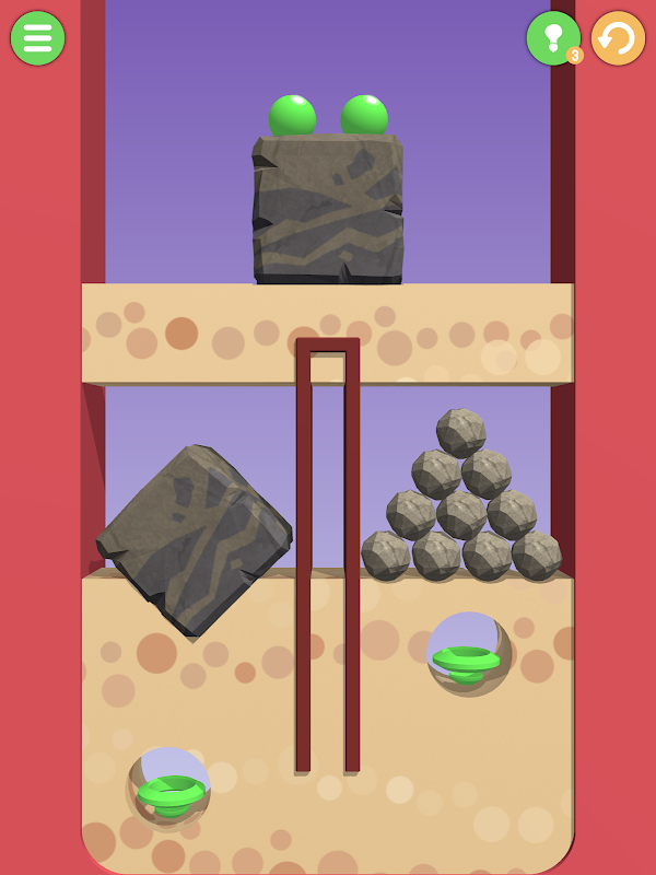 Hanya gali dengan jari anda - dan tunjuk bola ke cawan. Ia mudah, namun mencabar. Selalunya silap mata untuk menyelesaikan tahap, kadang-kadang anda perlu mengambil kesempatan dari kelajuan objek, kadang-kadang anda perlu membuat objek bertabrakan, tetapi sering cukup untuk menggunakan pemikiran intuitif anda.
