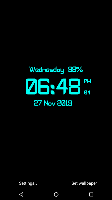 Tarikh acara Jam Digi, masa (12 Hr dan 24 Hr), bateri Dalam peratusan dalam peratusan pada skrin telefon dengan gaya digital dengan format mudah. masa juga menunjukkan 12 Hr atau 24 Hr formate sebagai pilihan anda kami juga menambah format tarikh yang banyak seperti yang anda mahu pilih jika anda tidak memerlukan sebarang petunjuk seperti secons, bateri, tarikh jadi pilih hide dan tidak dipaparkan di skrin. Anda boleh memilih warna jam dengan warna piker dan dua gaya jam hanya pilih gaya jam.