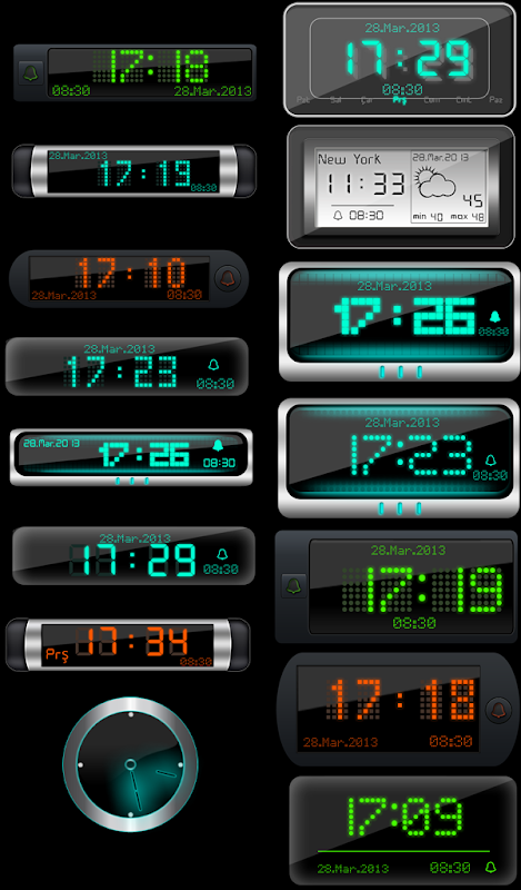 • 10 jam digital yang dipimpin cantik yang cantik. Semua jam dibuat dengan usaha yang hebat. 3 daripadanya mempunyai maklumat cuaca tempatan.