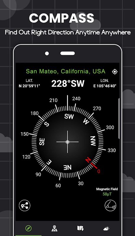 - Kompas pintar digital dengan peta gps, cuaca percuma