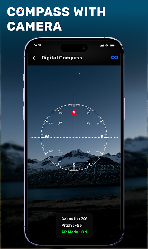 🧭 Kompas Digital – Bacaan azimut yang jelas dengan kamera untuk penjajaran mudah