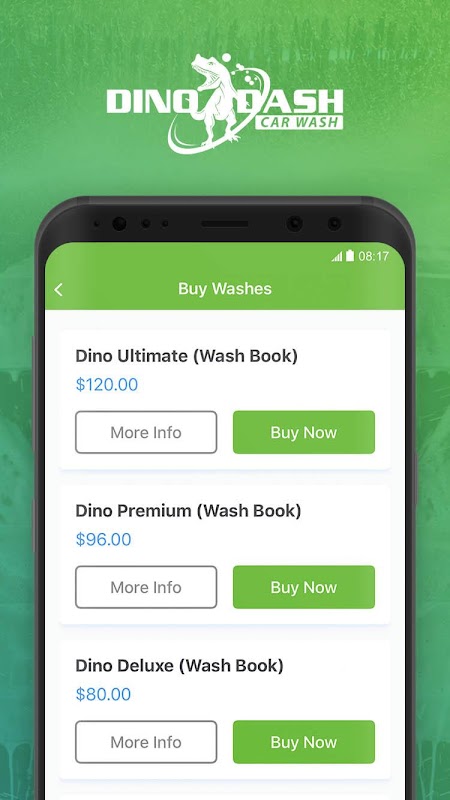 The updated Dino Dash app allows users to manage their unlimited accounts, purchase washes online, and send washes to friends and family.