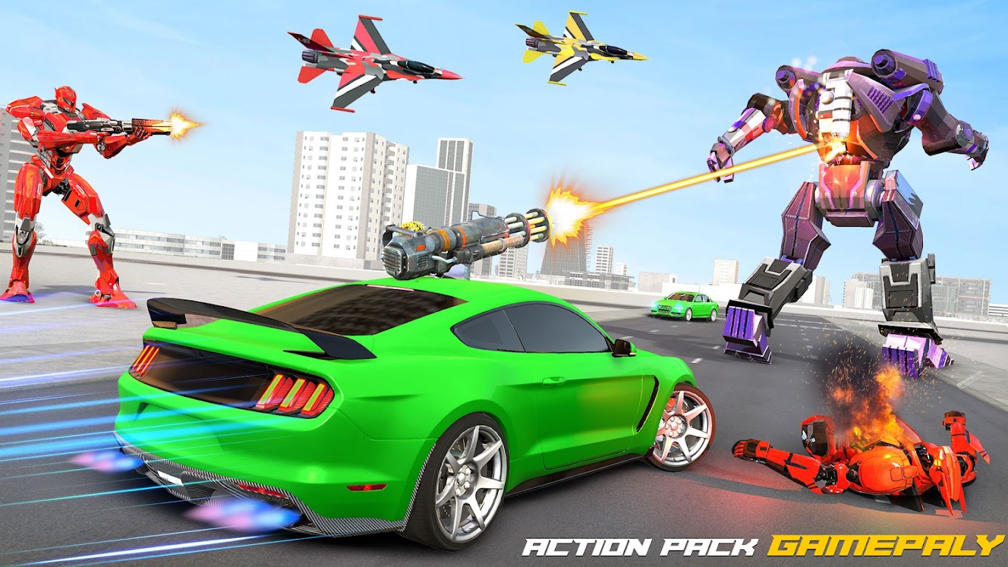 Install the grand robot war games to check our offline robot transforming game with different missions of flying robot car transformation battle games which empowers the robotic player with matchless shooting powers in robot fighting games. In the flying dragon robot car transforming Game, you have a grand hero in the form of wild dino robot games which have the support of police flying car transmute shooting to get the car transform robot features in robot fighting games. The super car transformation battle in real robot transform games adds huge powers of car shooting games which you can use in the way as you desire to shoot at flying cars in robot battle games.