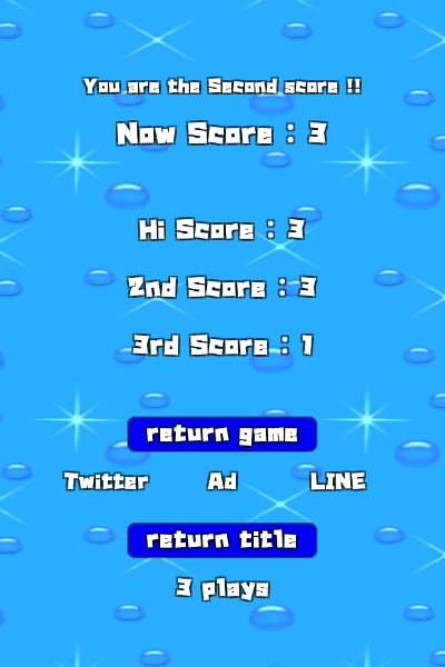 ・ゲームオーバーになっても、弾んでイカ軍団の間をくぐればポイントをゲットできます。