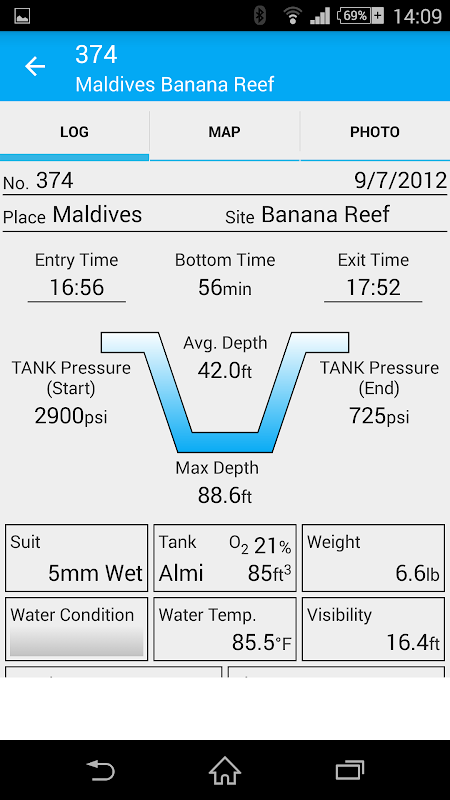 Ini adalah Scuba Diving Log app. Ia mempunyai rupa yang sama dan rasa sebagai kertas satu.