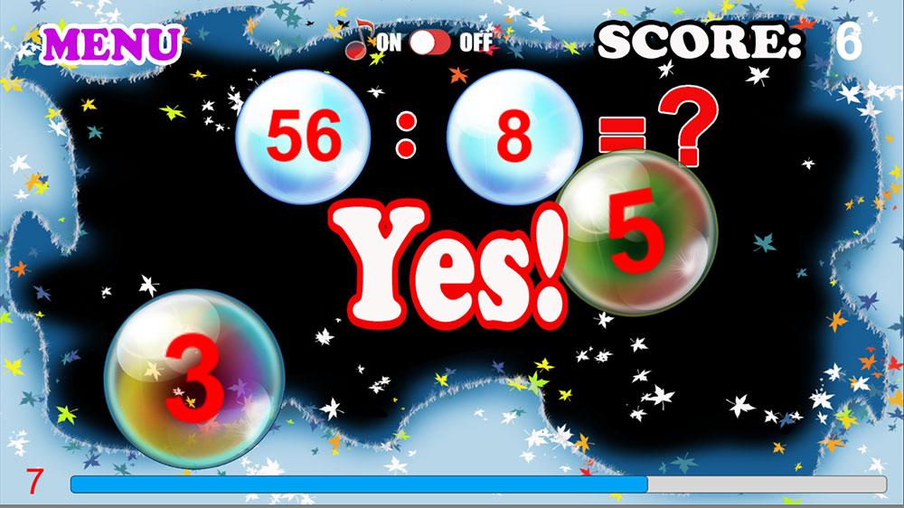 Guess the bubble with the correct answer! You have only 10 lifes. Bad count-Your life will burn! Well I think - lifes restored. Cheerful and reckless living for adults with FUNNY bubbles that grow very quickly and does not give time for reflection, makes you think fast. Simple EASY mode for children, where there are no obstacles, allows fun and easy to learn as the game Division Table. Train and develop their brains! It's fun and easy!