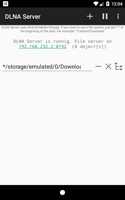 Mudah pelayan media yang serasi dengan DLNA. Ia membenarkan streaming fail multimedia (foto / muzik / video) dari peranti Android ke mana-mana klien UPnP / DLNA, misalnya, Smart TV, Play Station atau Xbox 360, dll.