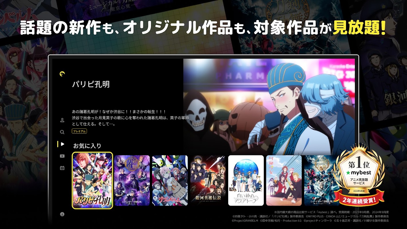 ■Perkhidmatan tontonan tanpa had anime No.1 My Best selama 2 tahun berturut-turut *3