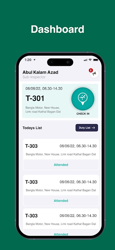 Pengurusan tugas pengguna: Pegawai boleh mendaftar masuk dan menyemak keluar tugas yang diberikan dengan lancar. Bersama-sama ini, mereka boleh berkongsi lampiran jika perlu dan juga menghantar SMS kecemasan terus daripada apl.