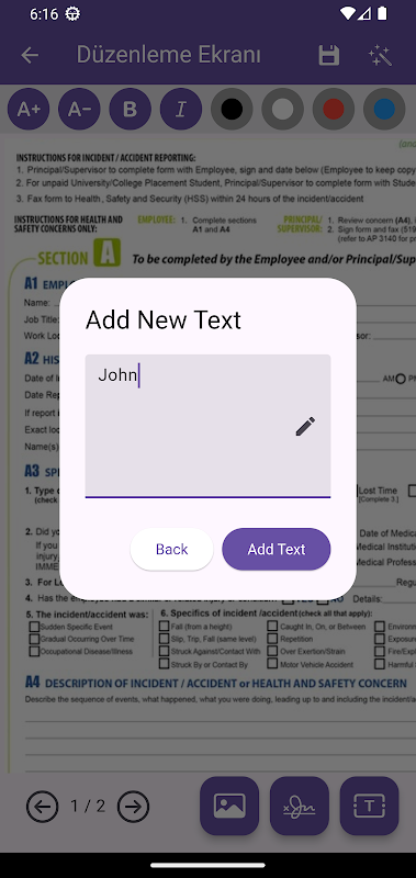 Sisipan Teks dan Pemformatan: Tambah dan format teks dengan mudah dalam dokumen anda. Sesuaikan saiz fon dan warna untuk memastikan dokumen anda kelihatan profesional dan digilap.
