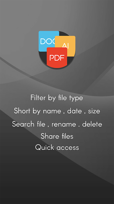 Pengurusan Dokumen di telefon bimbit anda. Senarai fail xls, pdf, doc, txt dalam mudah alih anda. Dalam apl ini, menguruskan dokumen PDF, Teks, Microsoft Word, Microsoft Excel dan Microsoft PowerPoint di satu tempat.