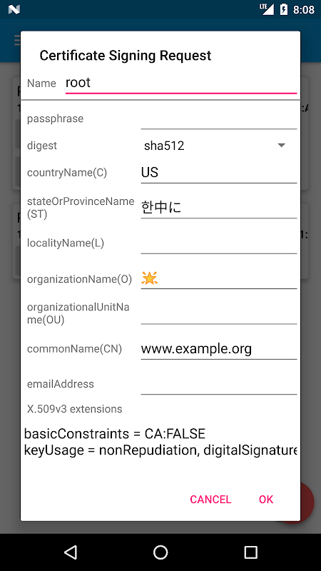 * Sambungan X.509v3 tersuai (lihat openssl.cnf)