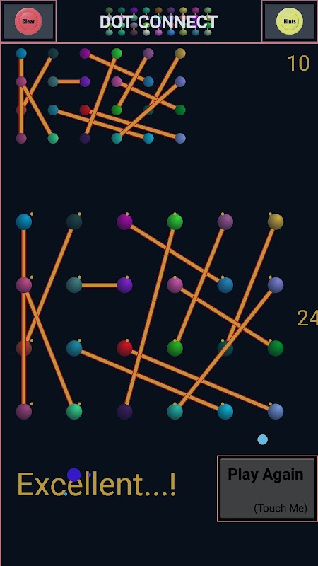 Dot Connect adalah stres buster dan permainan penggoda otak, bermain permainan ini sangat mudah, pilih kerumitan, padankan titik warna dan lebih sesuai dengan kedudukannya. Butang kuning digunakan untuk mendapatkan petunjuk dengan bilangan Titik dan Sambungan yang salah. Butang merah digunakan untuk membersihkan dan menghidupkan semula teka-teki semasa. Secara lalai, bantuan tambahan diberikan dalam dua tahap kerumitan terakhir [sukar (2) dan Kompleks]. Juga seseorang boleh mencubit dan membesarkan bahagian skrin untuk lebih jelas mengenai Titik dan Sambungan.