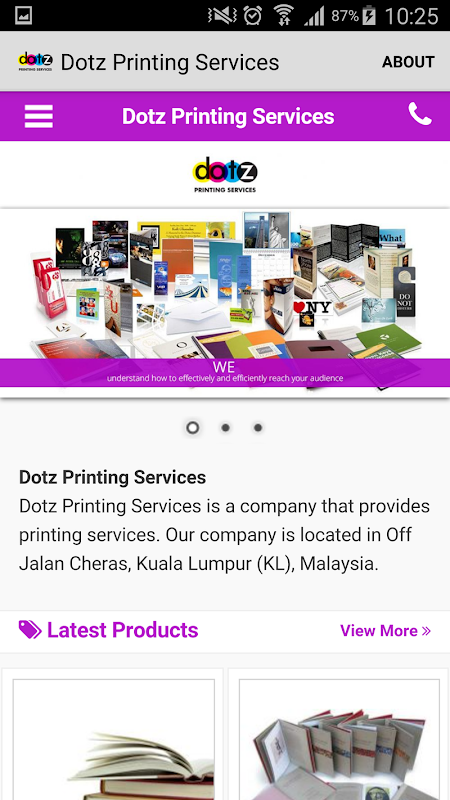 Dotz Printing Services is a company that provides printing services. Our company is located in Off Jalan Cheras, Kuala Lumpur (KL), Malaysia. We are highly specialized in the printing field.