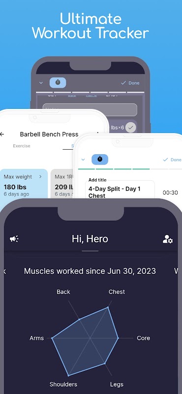 Sesuaikan pemasa senaman anda dan automatikkan tempoh rehat anda antara set dengan mudah. Dengan reka bentuk intuitif dan bersih kami, anda boleh menjejaki kemajuan anda ke arah matlamat kecergasan anda dengan mudah tanpa sebarang nota yang tidak kemas. Selain itu, tanpa program mahal yang misteri "disesuaikan hanya untuk anda", anda adalah bos anda sendiri apabila melibatkan rutin kecergasan anda.