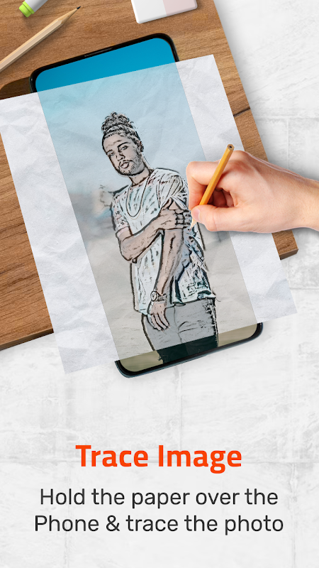 Jejak sebarang imej menggunakan output kamera daripada skrin telefon anda; imej tidak akan dipaparkan pada kertas, tetapi anda boleh melukisnya sama seperti anda melukisnya. Apl Draw Sketch and Trace menggunakan teknologi realiti tambahan untuk menayangkan imej pada permukaan, seperti kertas. Anda boleh mengikut garisan yang dikesan pada skrin peranti anda semasa melukis di atas kertas, mencipta pengalaman melukis jejak berpandu.