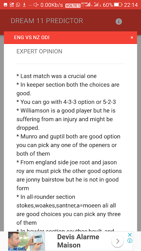 It also inform you about the captain and the vice captain choices and also the main key players to the match.