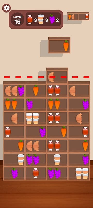 Cara bermain - Seret atau ketik untuk mengalihkan rak dan kumpulkan tiga item pada rak untuk membuatnya hilang dan mengosongkan ruang.