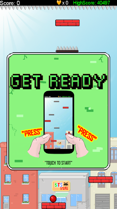 Ketuk sebelah skrin untuk mengendalikannya dari satu blok ke satu lagi semasa mengumpul nyawa untuk memulihkannya dari kejatuhan atau letupan.