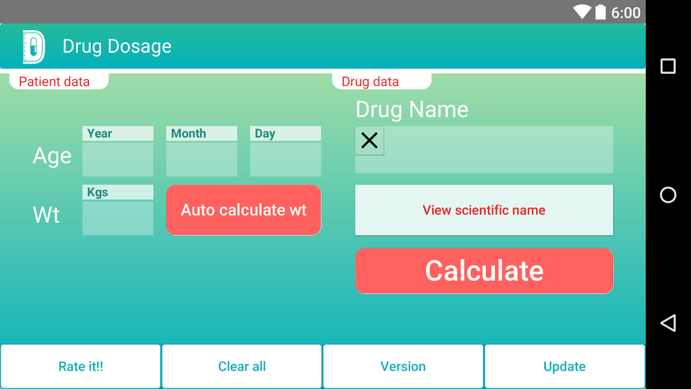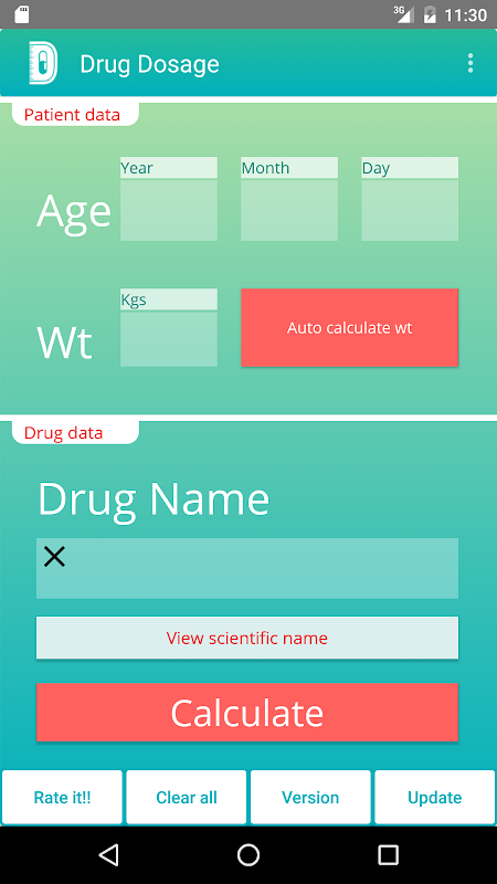 Aplikasi kami adalah serba boleh dan pelbagai fungsi. Dosis Dadah direka dengan UI intuitif dan semua butiran penting untuk memenuhi hampir semua keadaan yang mungkin mengubah pengiraan dos contohnya: