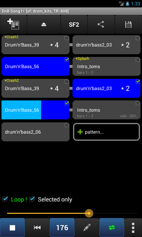 Nota: Pada masa ini aplikasi ini adalah "hanya" seorang pemain drum dan Pengatur di peringkat corak, tetapi tidak di peringkat rentak, iaitu. tidak mampu mewujudkan * corak * baru seperti sequencer rentak.