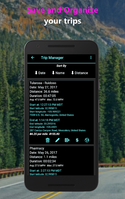 ✔️ Meter cas perjalanan. Kena caj untuk jarak perjalanan. Cetak caj perjalanan sebagai fail csv dan serahkannya kepada majikan anda untuk pembayaran balik perjalanan atau untuk tujuan cukai.