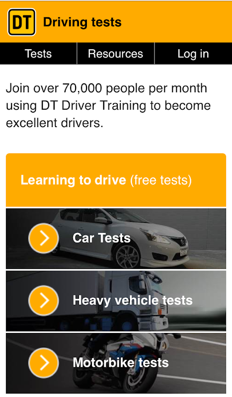 Ujian teori memandu kenderaan DT Driver untuk kenderaan, kenderaan berat dan lesen belajar motorsikal termasuklah soalan rasmi New Zealand Road Code dari NZTA untuk mengamalkan lesen pelajar anda, serta modul premium yang meliputi syarikat dan pemandu armada trak, kereta dan kenderaan pakar.