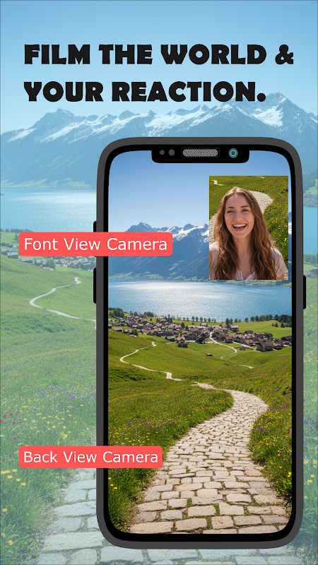 DUAL CAMERA VLOG ialah aplikasi DUAL CAMERA yang penting untuk setiap vlogger dan pencipta kandungan. Rakam video dan foto menggunakan kamera hadapan dan belakang peranti anda secara serentak tanpa memerlukan penyuntingan yang rumit. Dapatkan dua perspektif (Dual View) dalam satu pengambilan yang sempurna!
