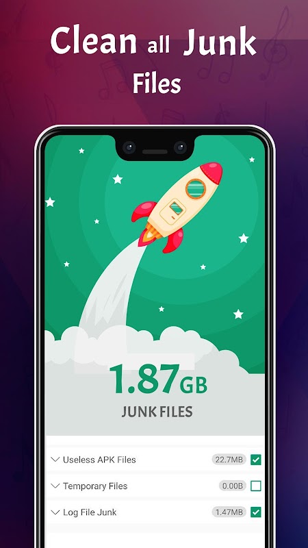 Speed up your phone by removing junk files, cache files, temp files and useless apk's.