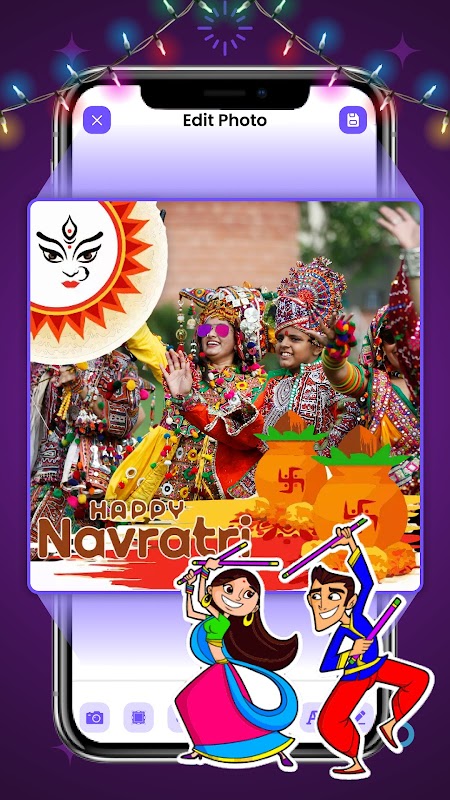 📱💽📷🎞️📹🎥🏜️🏙️📲🌁 Add a text to your photo, and decorate the Navratri Frame with some amazing stickers.