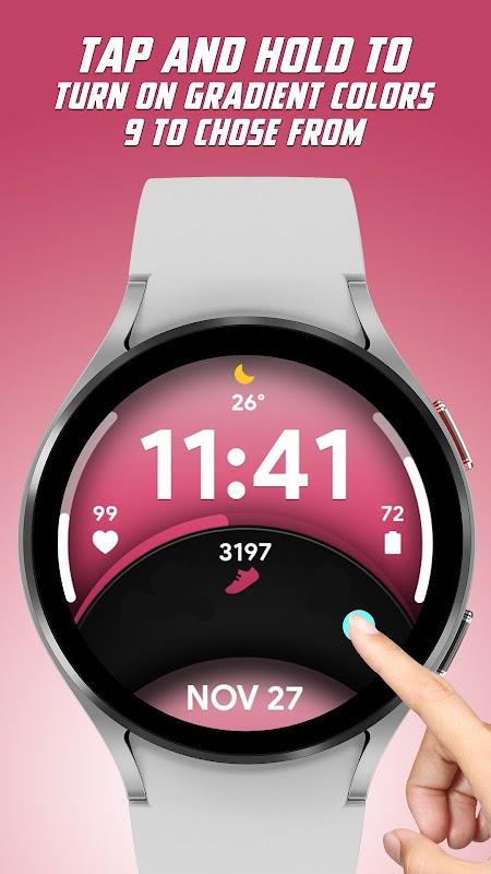 Reka bentuk unik Sporty Colorful kelihatan dengan Penyesuaian yang menakjubkan di mana anda boleh memilih 30 warna berbeza dan 9 warna Kecerunan berbeza semuanya dalam satu muka jam, bukan sahaja anda boleh menambah komplikasi tersuai supaya anda mendapat data yang anda perlukan bukan seperti yang kami berikan 😉