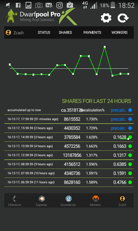 Dwarfpool Mining Statistics PRO - Altcoins Monitor for ETH, EXP, XMR, GRS, ZEC