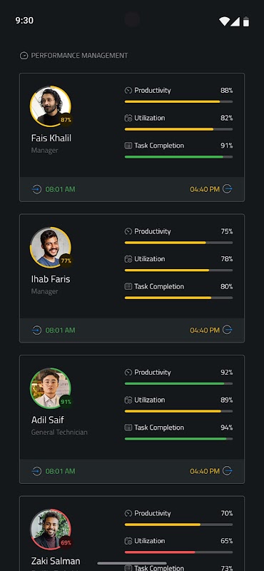 • Pemantauan Prestasi – Dapatkan pandangan tentang produktiviti juruteknik dan kadar penyiapan tugas.