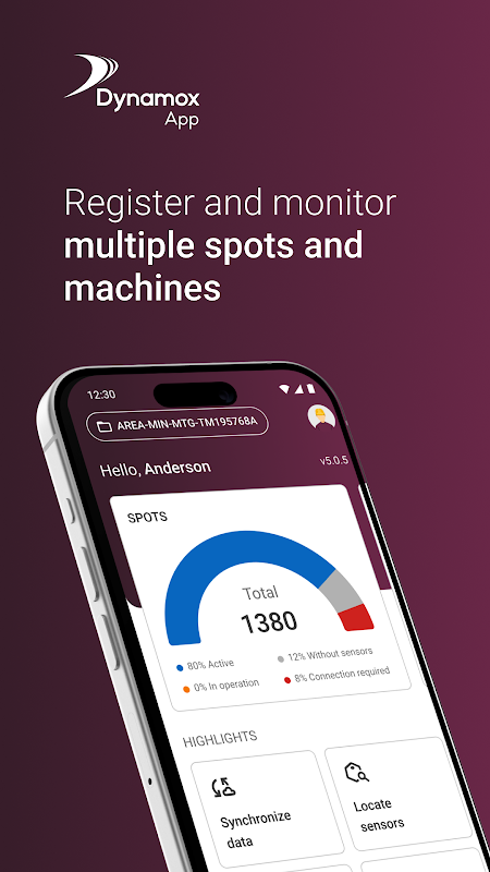 Apl Dynamox bersambung kepada keluarga penderia Dynamox untuk mengumpul data getaran dan suhu daripada aset industri, membolehkan analisis lanjutan dan diagnostik automatik dengan sokongan Kecerdasan Buatan Platform Dynamox.